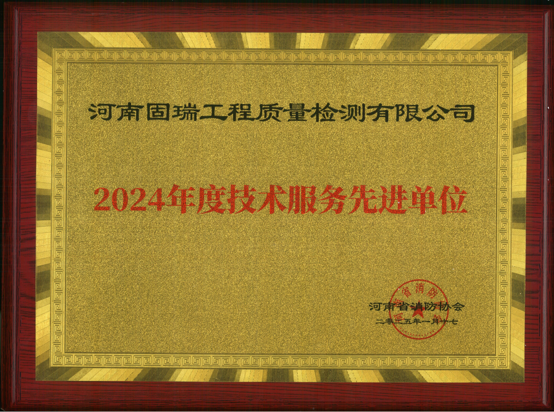 熱烈祝賀河南固瑞工程質量檢測有限公司榮獲河南省消防協(xié)會2024年度技術服務先進單位!!!